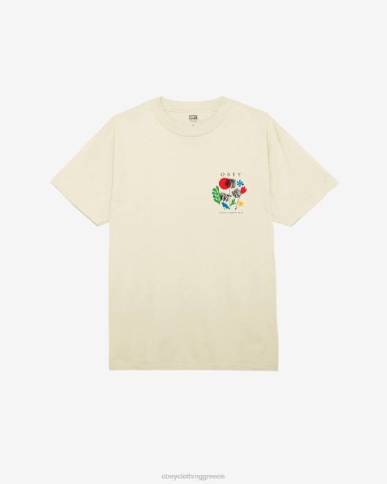 κρέμα είδη ένδυσης 686F321 OBEY λουλούδια χαρτιά ψαλίδι κλασικό μπλουζάκι άνδρες