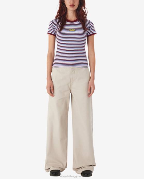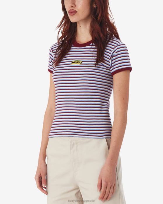 θιβετιανό κόκκινο μούλτι είδη ένδυσης 686F557 OBEY μωρό μπλουζάκι με ρίγες κυπαρισσιού γυναίκες