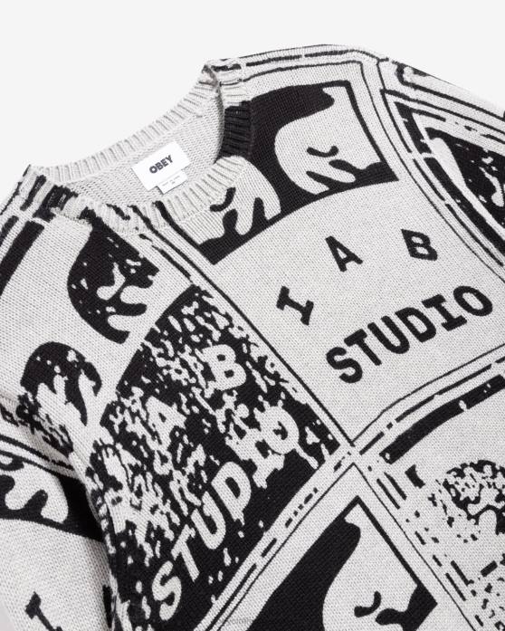 ερείκη γκρι πολυ είδη ένδυσης 686F265 OBEY ξεθωριασμένες αφίσες πουλόβερ άνδρες