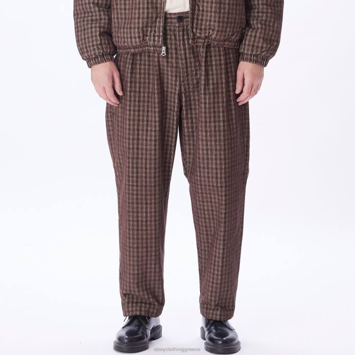 καφέ πολυ είδη ένδυσης 686F932 OBEY φουμπαρ πλισέ καρό παντελόνι κορδόνι άνδρες
