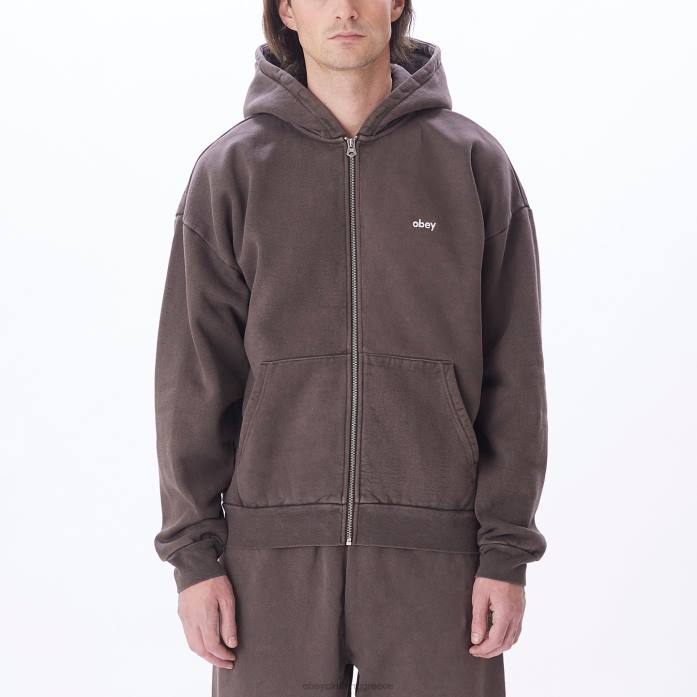 pigment java καφέ είδη ένδυσης 686F979 OBEY Κουκούλα με φερμουάρ από πεζά pigment άνδρες